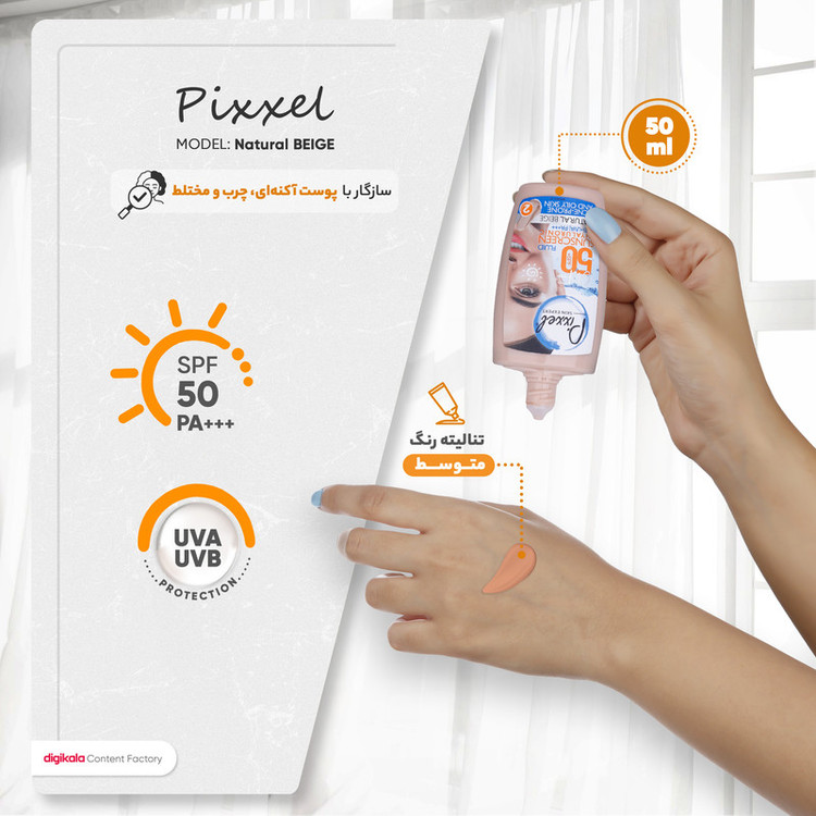 کرم ضدآفتاب پیکسل مدل Natural BEIGE، حجم 50 میلیلیتر