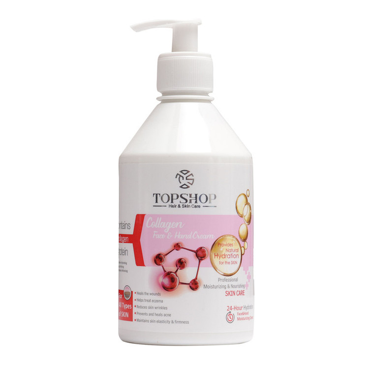 کلاژن فراوان ترین پروتئین در بدن است که در تقویت پوست نقش مهمی دارد و می تواند قابلیت ارتجاعی و آبرسانی به پوست را افزایش دهد و مانع پیری پوست گردد. افزایش سن، میزان تولید کلاژن را کاهش می دهد و منجر به خشکی پوست و چین و چروک می شود. کرم مرطوب کننده کلاژن تاپ شاپ که حاوی عصاره انار نیز است، استحکام و کشش پوست را حفظ کرده، خطوط و چین و چروک ها را کاهش می دهد و به روشن و شفاف پوست کمک می کند.