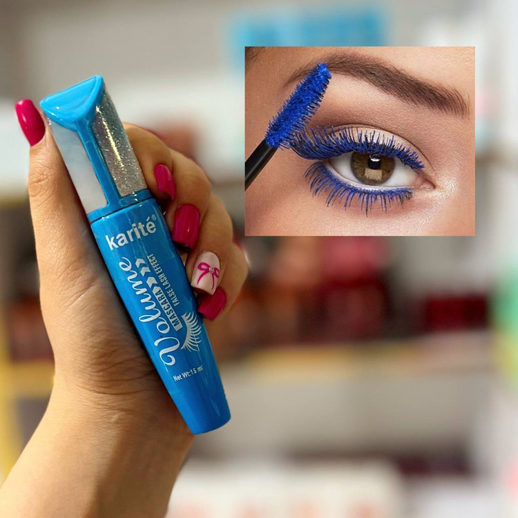 ریمل آبی حجم دهنده کاریته (karite Volume Mascara False Lash Effect) مناسب برای مهمانی و مجالس به چشمها و آرایش شما جذابیت خاصی بخشیده و با خاصیت ضدآب و ماندگاری بالای این ریمل دیگر نگران ازبین رفتن و ریختن ریمل در زیر چشم خود نباشید. برس خاص و بزرگ مویی این ریمل باعث پوشش کامل تارهای مژه شده و از چسبیدگی آنها به هم جلوگیری میکند و بدلیل بافت سبک مواد ریمل هیچگونه سنگینی روی پلک خود احساس نخواهید کرد. این ریمل به راحتی با آرایش پاک کن های چشم پاک می شود. این محصول ضد حساسیت می باشد و برای کسانی که از لنز استفاده می کنند مناسب است. این ریمل کامل کننده ی آرایش صورت است و ظاهری منحصر به فرد می بخشد.