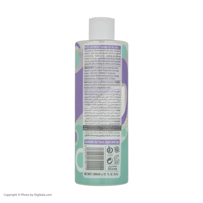 پوست صورت احتیاج به رسیدگی و پاکیزگی دارد. بعد از اینکه ساعتها آرایش روی پوست میماند پاک کردن آرایش به پوست فرصت نفس کشیدن میدهد. محلول پاک کننده آرایش رندل مدل میسلار واتر یک پاک کننده ملایم و در عین حال موثر برای پاک کردن آرایش صورت است. این محصول تخصصی برای پوستهای خشک تولید شده و به راحتی تمامی آرایش را از روی پوست صورت به صورت عمقی پاکسازی میکند. این محلول پاککننده حاوی عصاره آلوئه ورا و گلیسیرین است که علاوه بر پاک کردن آرایش صورت موجب حفظ رطوبت و تغذیه پوست شما نیز میشود. این محلول پاککننده فاقد پارابن و الکل است به همین دلیل آسیبی برای پوست شما نخواهد داشت و با خیالی راحت میتوانید از این محلول استفاده کنید. برند رندل محصولات باکیفیت و کاربردی بسیاری درزمینهٔ محصولات بهداشت شخصی دارد. اگر پوست شما خشک است و به یک محلول پاککننده آرایشی احتیاج دارید ما به شما محلول پاککننده آرایش صورت رندل مدل میسلار واتر را پیشنهاد میدهیم.