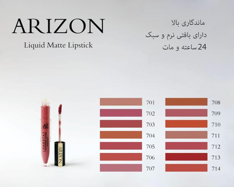 رژ لب مایع آریزون مخملی مات(لطفا کد رنگ مورد نظر را هنگام ثبت سفارش در قسمت توضیحات وارد نمایید)