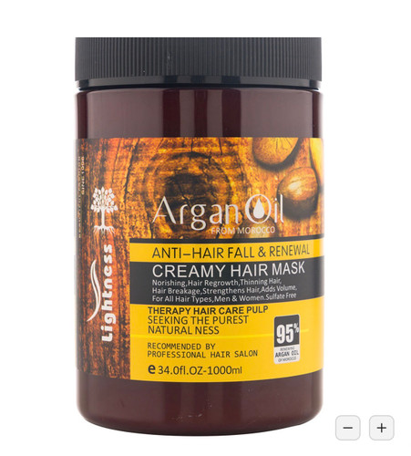 ماسک مو تقویت کننده آرگان لایتنس مدل Argan Oil فاقد سولفات مناسب انواع مو حجم 1000 میلی لیتر